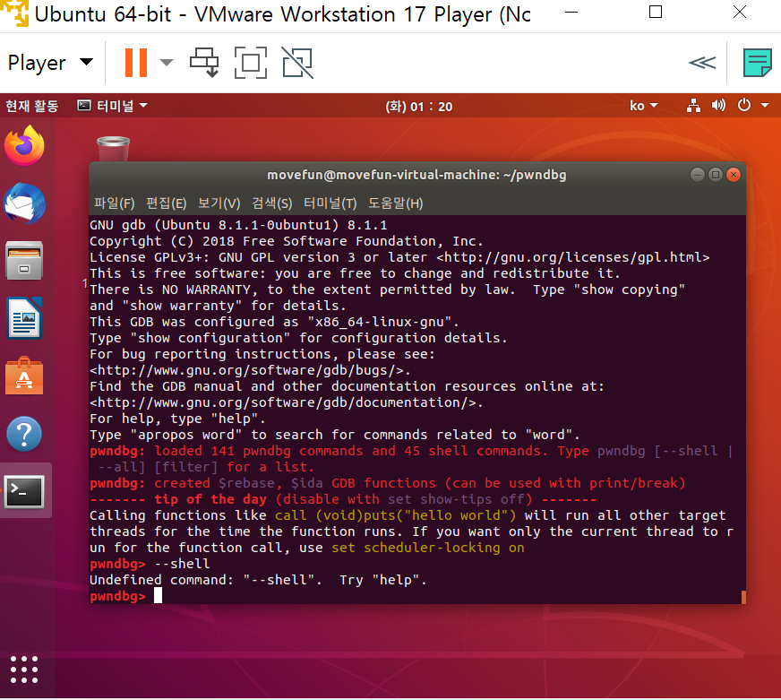설치가 완료된 후, gdb를 입력하면 실행이 완료된다.