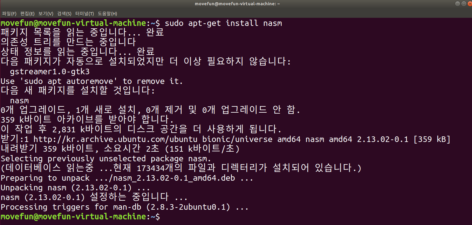 $ sudo apt-get install nasm