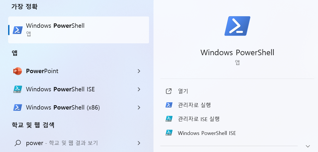 1. 파워쉘(PowerShell)을 실행합니다.