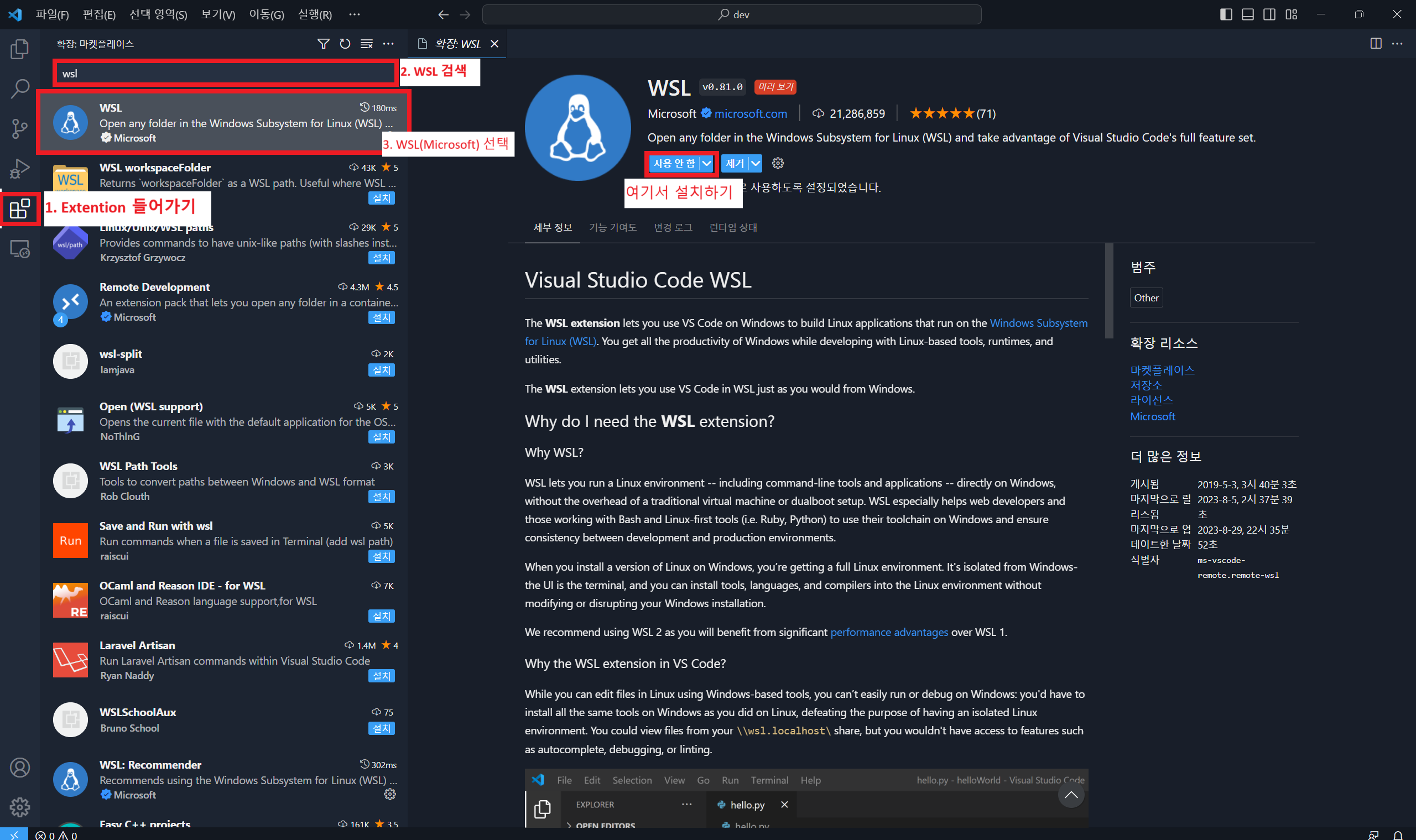 3. Microsoft에서 제작한 WSL을 설치합니다.