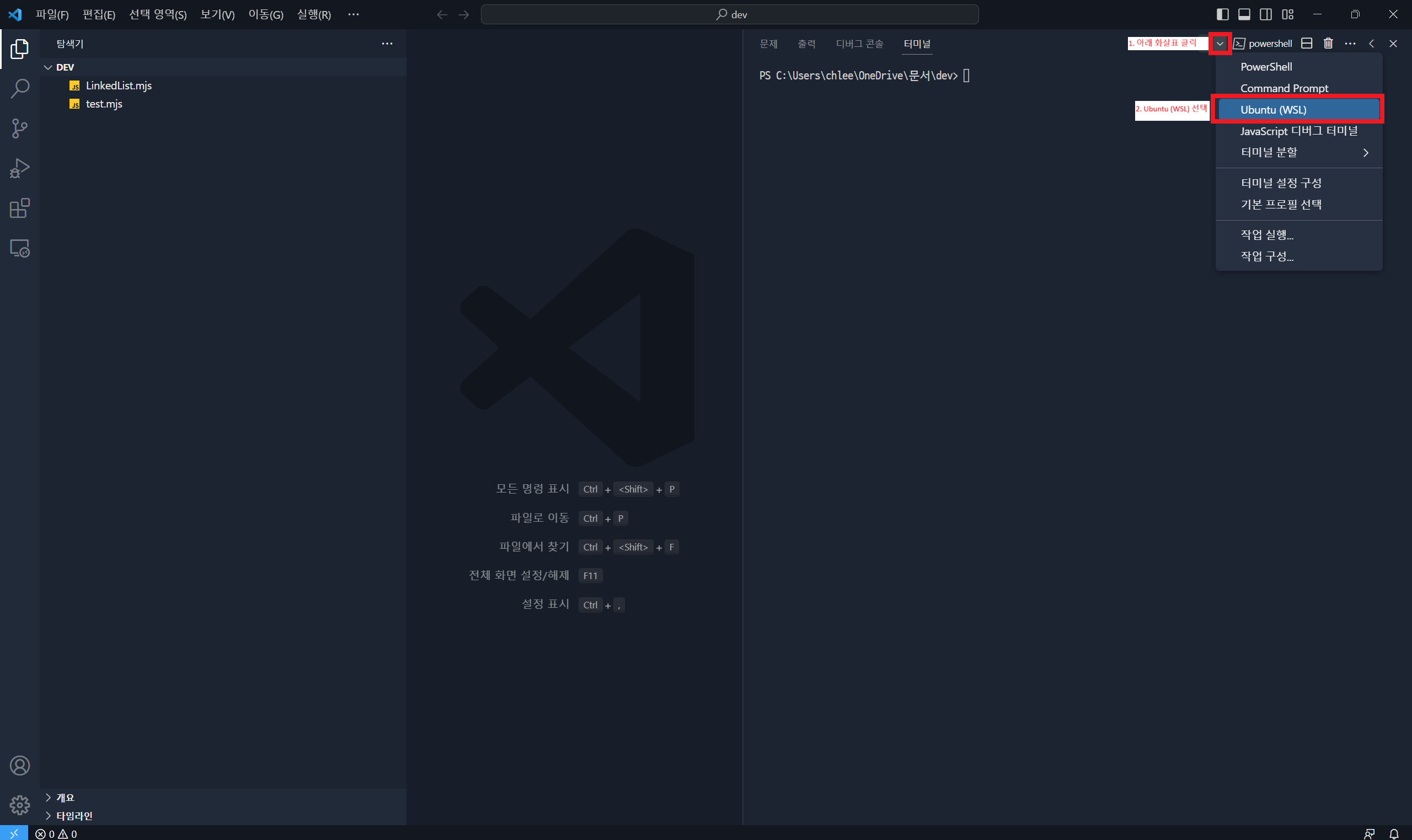 터미널 창이 열리면 아래를 따르면 WSL을 사용할 수 있습니다.