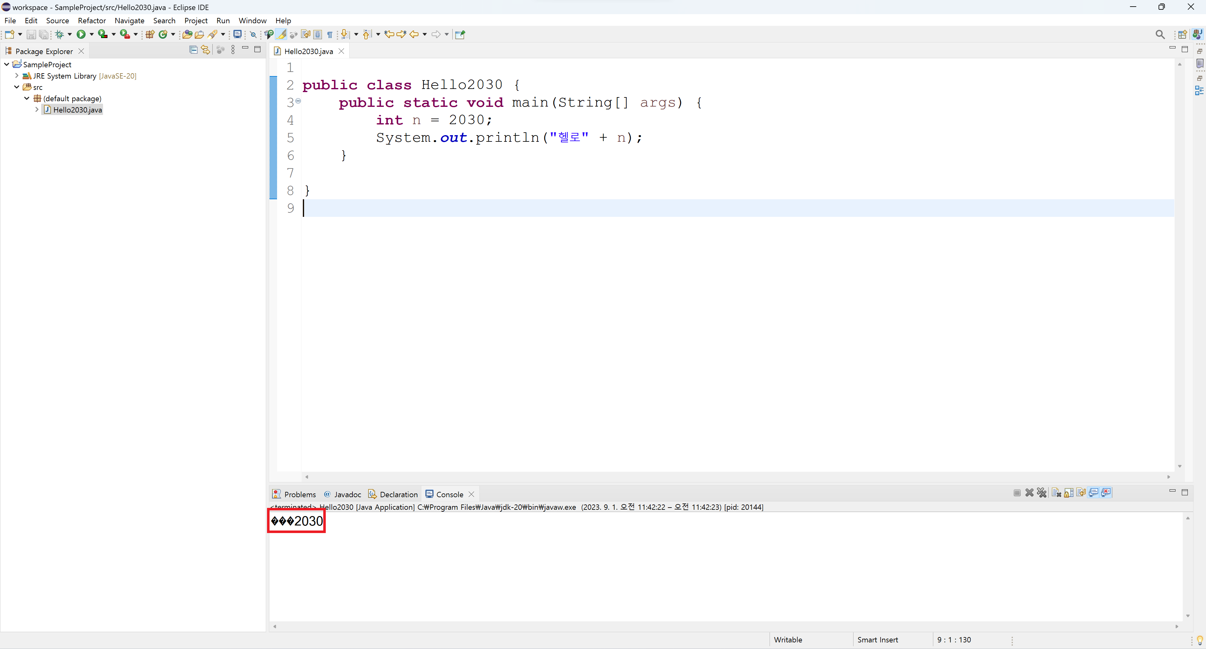 eclipse에서 한글을 사용하면 Console창에 다음과 같이 깨져서 나옵니다.