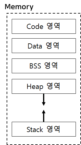 메모리는 크게 코드(Code)영역, 데이터(Data)영역, BSS 영역, 힙(Heap) 영역, 스택(Stack) 영역으로 구분됩니다. 이 영역이 어떤 것을 의미하는지 알아보겠습니다.