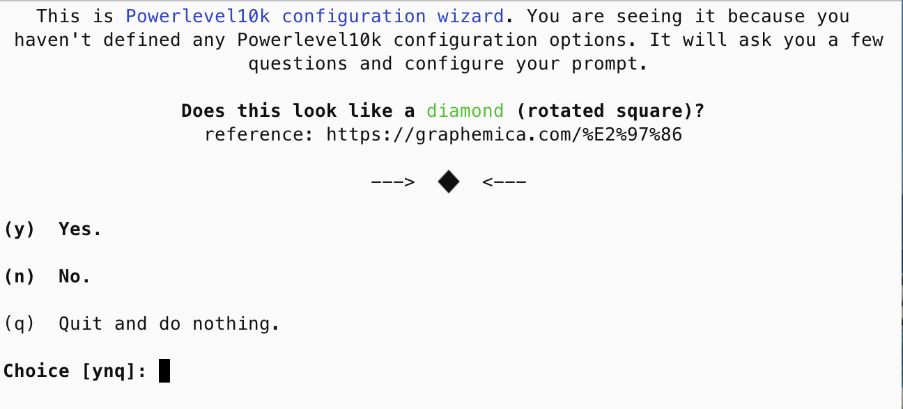 haven't defined any Powerlevel10k configuration options. It will ask you a few